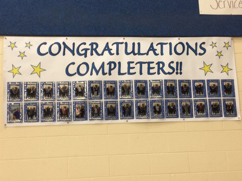 We also owe a huge thank you to Heidi Price in the office for collecting all the registration forms, working the registration table at the dance, and everything that she does for us all year long. Plus, Chris Moore and his invaluable suggestions for decorating set-up, supplying us with the tables, easels, chairs, and all the equipment we need to set-up, and especially for hanging the Completer’s Banner in the gym. Both Heidi and Chris go above and beyond the call of duty and we surely appreciate this.